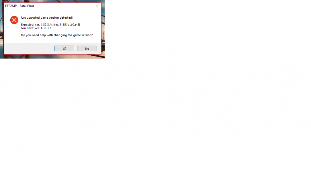 Hi Recently, SCS update ETS2 to 1.32.3.7 and TruckersMP only support 1.32.3.4s. When i start truckersmp, i get an error about versions. I have tried to downgrade the game to 1.32, but when i do this downgrade, it download an older version that the TruckersMP supported (1.32.3.4). How can I fix that error?