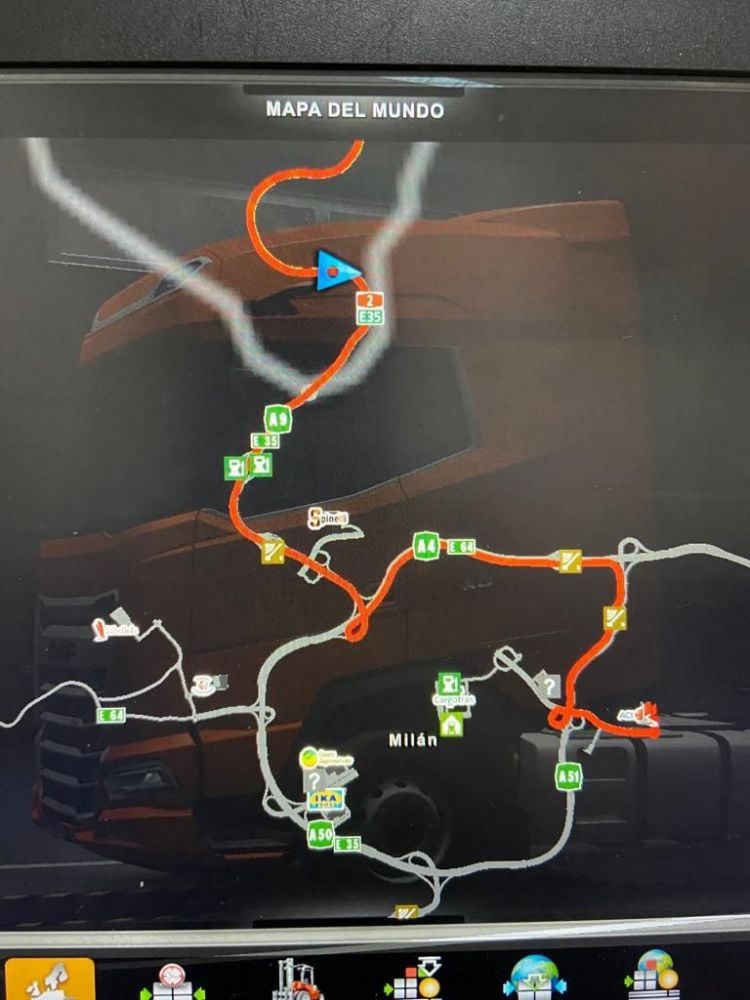 When i was doing a job from (¿?) to Milan - i saw that the road was like a pixel rainbow or something (image 2 - image 3). I keep driving for about 20KM and then my game crash, i restarted the game and the bug happened again. So i took another route... everything was perfect i even saw other players but... (image 1 - image 4) the same bug happened again but in other road :/. My game crashed again so i just stopped playing. IDK if this is a bug from the game itself or truckersmp. I dont have others mods just the Scandinavian and Going East DLCs | Sorry for my english and the quality of the photos I was thinking of re-install the game but idk if is going to work