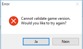 Cannot Validate Game Version. Would you like to try it again?