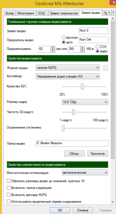 Mishka [BY] Posted April 23, 2015 Report Posted April 23, 2015 Как вы знаете, в МП иногда попадаются не слишком адекватные водители, а постоянно писать видео не слишком удобно, хочу предложить способ как записать именно тот момент который вам нужен. 1. Для начала вам нужна программа MSI Afterburner. Сайт http://gaming.msi.com/features/afterburner(прямая ссылка на последнюю версию http://download.msi.com/uti_exe/vga/MSIAfterburnerSetup.zip) 2. Устанавливаем, во время установки будет предложено установить RivaTuner Statistics Server, соглашаемся, далее перезагрузка. 3. Запускаем MSI Afterburner и RivaTuner Statistics Server. 4. Заходим в настройки и ставим автозагрузку при старте виндовс, кто хочет можно поставить отображение фпс\температуры\и т.д. На вкладке захват видео ставим настройки как на картинке. 5. Теперь при заходе в игру начнется предзапись видео в память, при нажатии Ctrl+F12 начнется запись видео в файл, при этом туда добавтся предыдущие пару минут. При активной предзаписи будет отображаться крутящийся круг и надпись BUF При нажатии Ctrl+F12 начнется запись видео и надпись BUF исчезнет. Вот видео записанное таким образом, запись видео была начата после столкновения, но так как включена предзапись все действия нарушителя попали в кадр 1 14 Server EU#2 Mishka[BY]